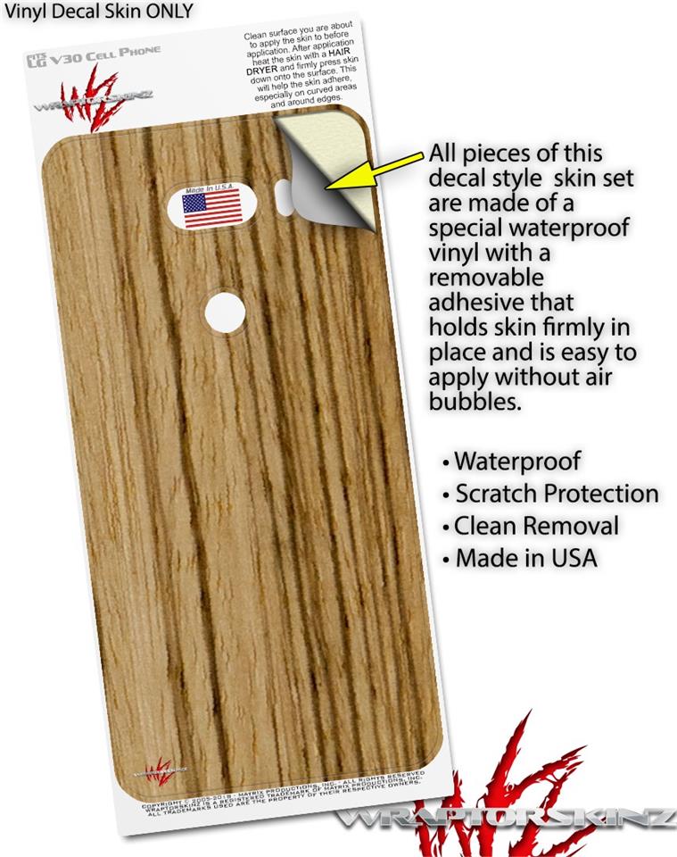 Skin Decal Wrap for LG V30 Exotic Wood Zebra Wood Vertical