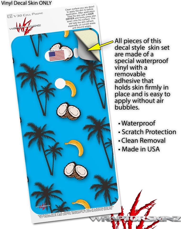 Skin Decal Wrap for LG V30 Coconuts Palm Trees and Bananas Blue Medium
