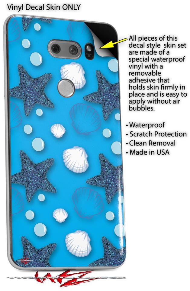 Skin Decal Wrap for LG V30 Starfish and Sea Shells Blue Medium