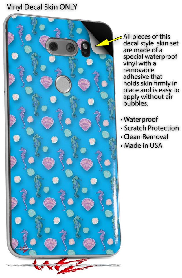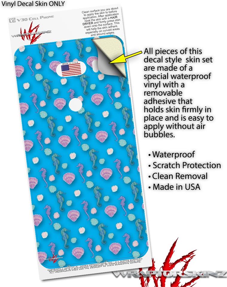 Skin Decal Wrap for LG V30 Seahorses and Shells Blue Medium