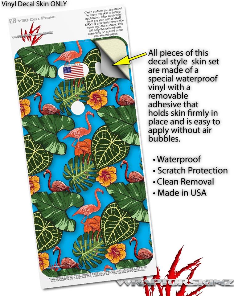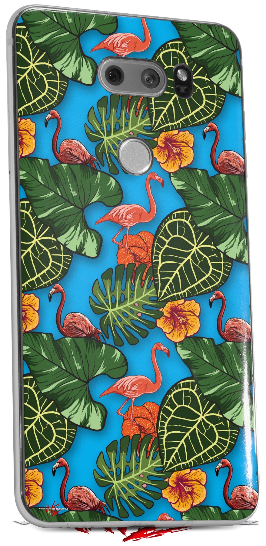 Skin Decal Wrap for LG V30 Famingos and Flowers Blue Medium