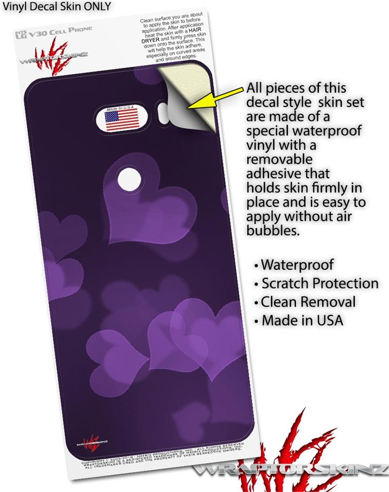 Skin Decal Wrap for LG V30 Bokeh Hearts Purple
