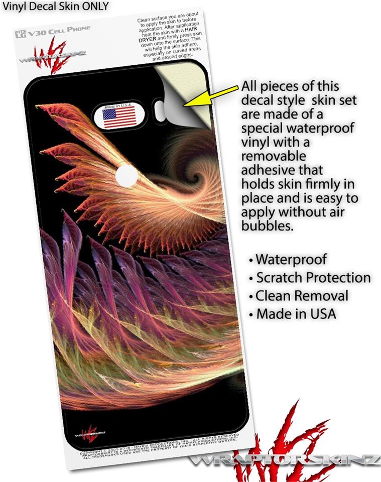 WraptorSkinz® skin wraps for the LG V30 are printed using superb photo quality designs and vibrant colors printed with special fade resistant inks that last even in direct sun for years. WraptorSkinz are a composite of two layers of commercial grade materials. The bottom layer is a soft, flexible vinyl with a special removable adhesive that is easily positioned, applied without air bubbles. Next we print the bottom layer with UV protected, fade resistant inks that deliver superb photo quality designs in vibrant colors. Finally, we bond a professional grade laminate over the entire LG V30 skin adding a glossy protective finish.