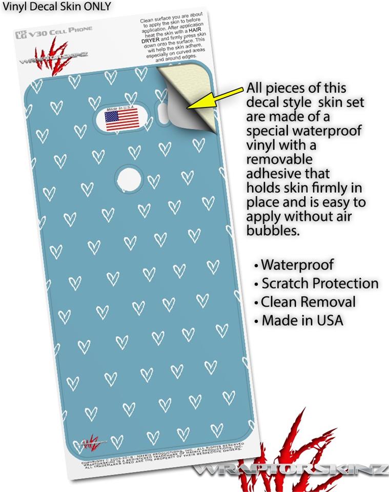 Skin Decal Wrap for LG V30 Hearts Blue On White