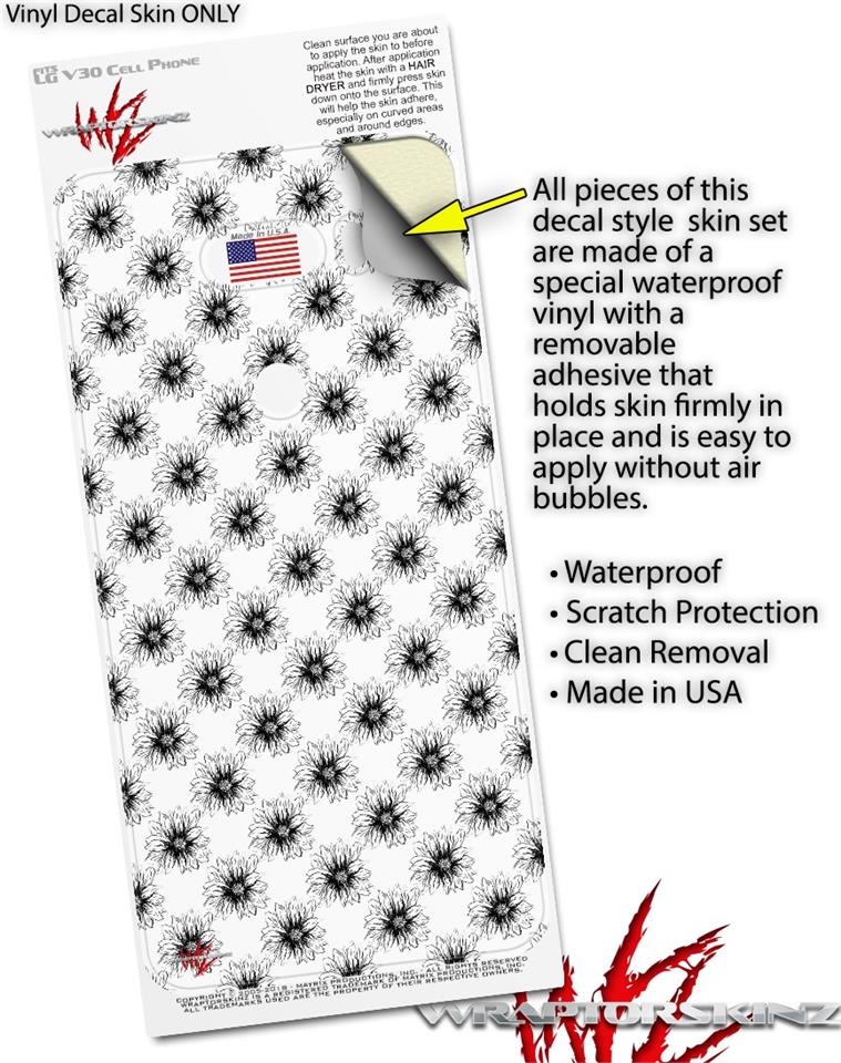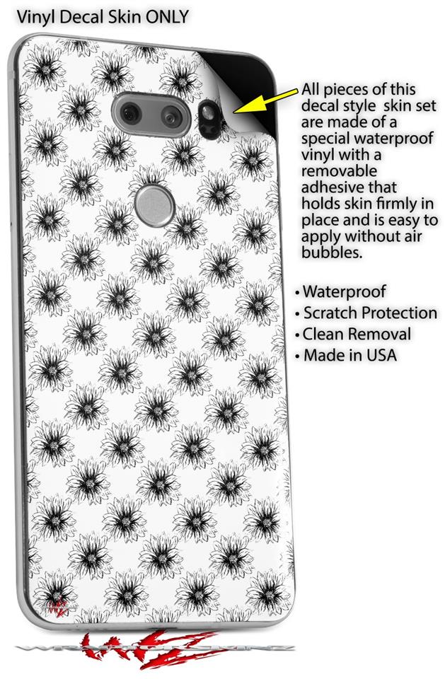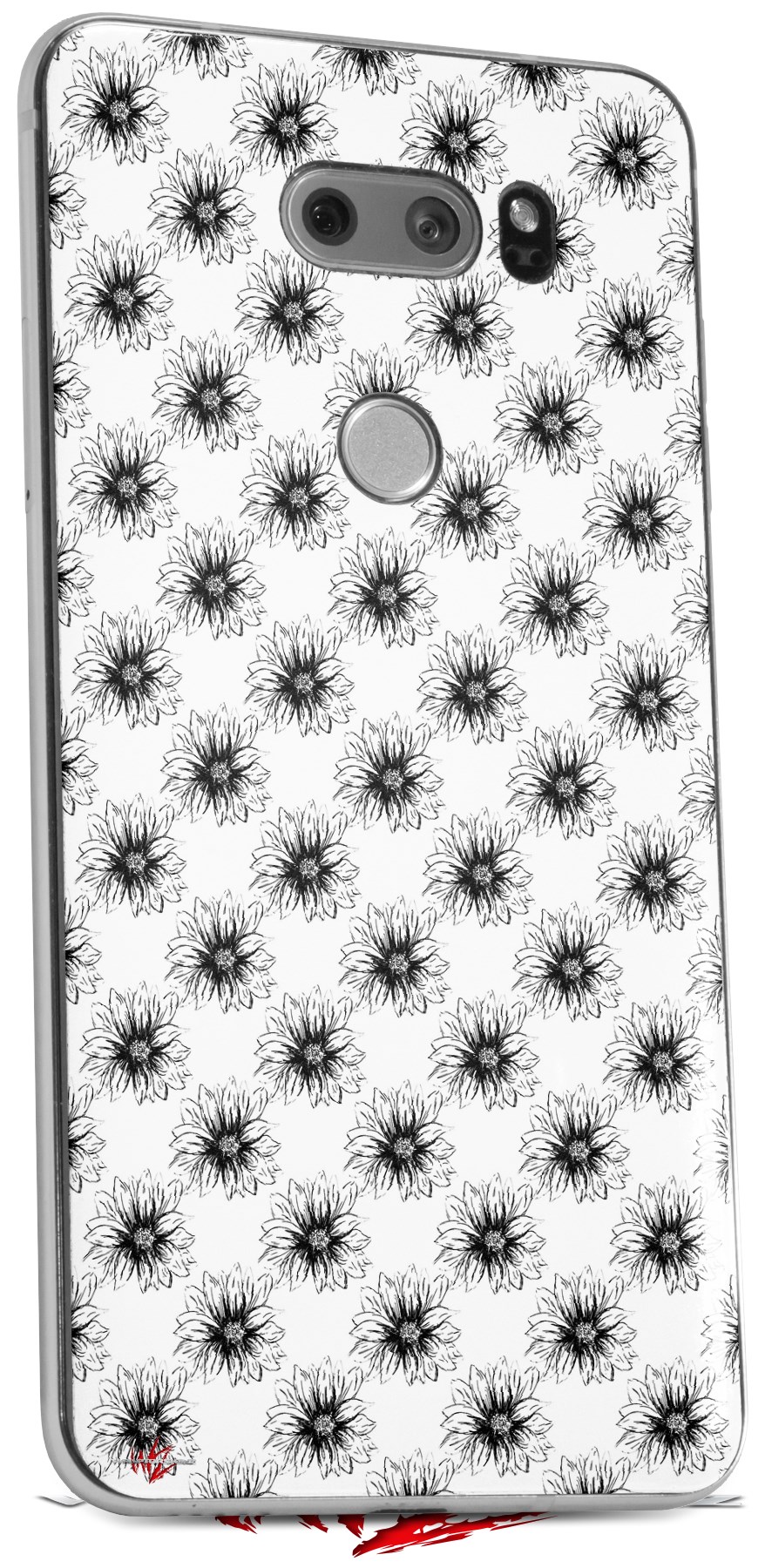 Skin Decal Wrap for LG V30 Kearas Daisies Black on White