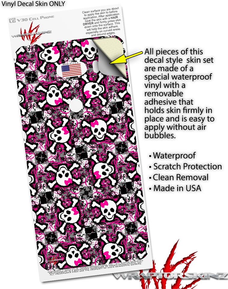 Skin Decal Wrap for LG V30 Splatter Girly Skull Pink