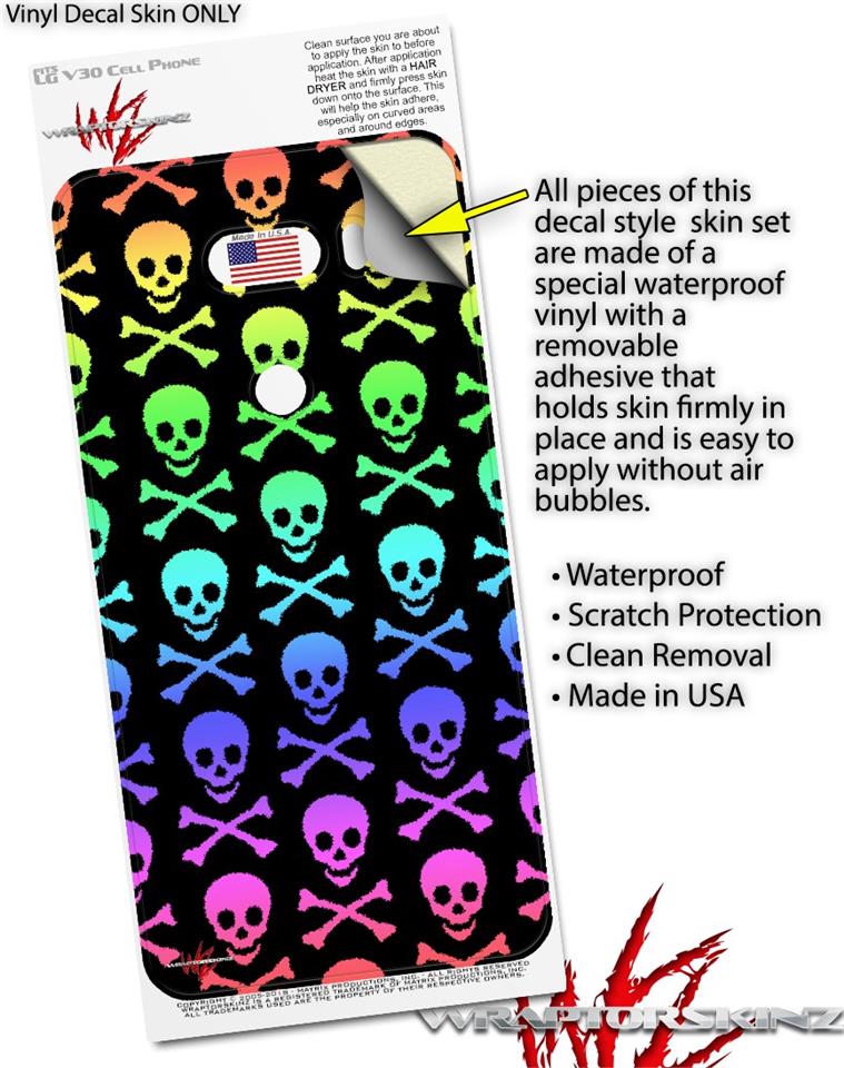Skin Decal Wrap for LG V30 Skull and Crossbones Rainbow