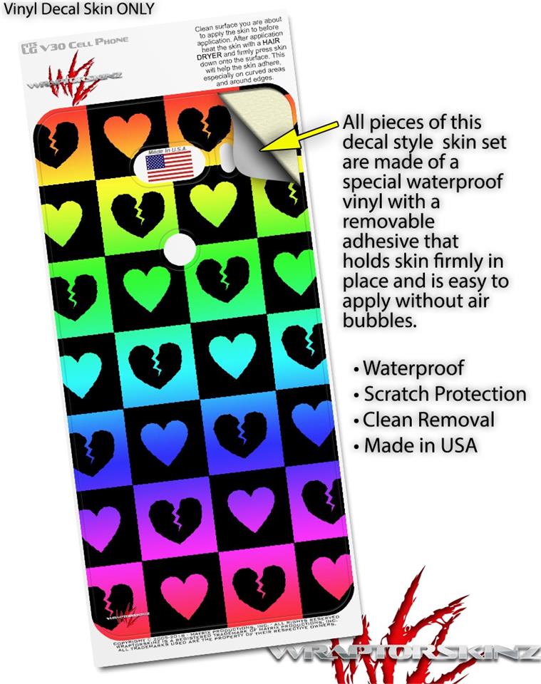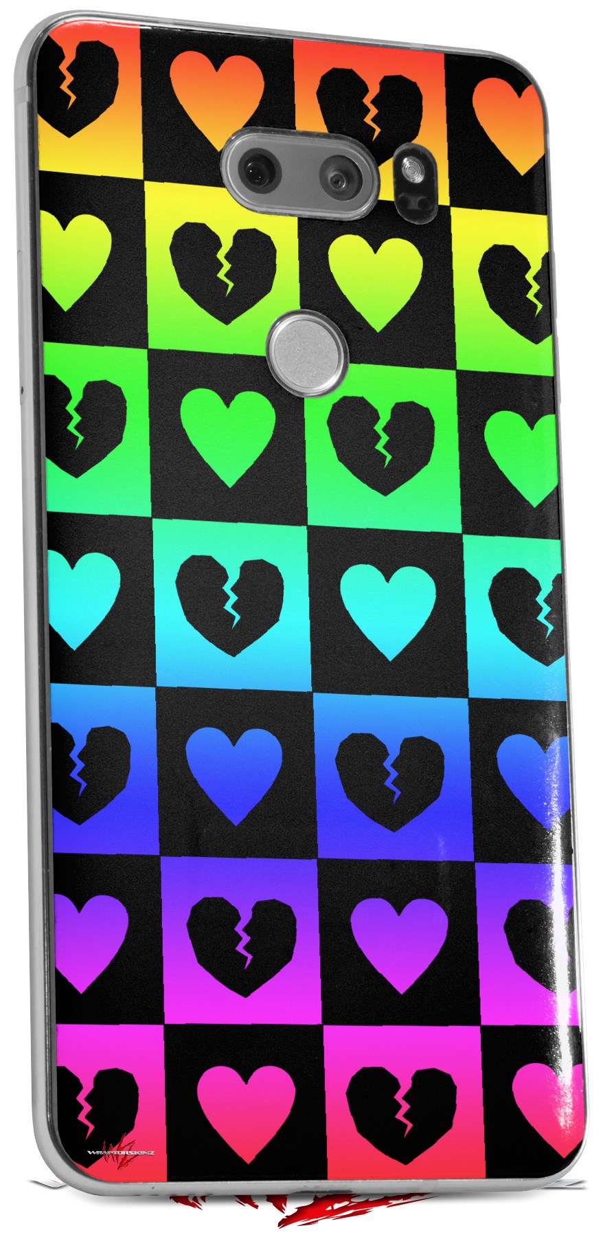 Skin Decal Wrap for LG V30 Love Heart Checkers Rainbow