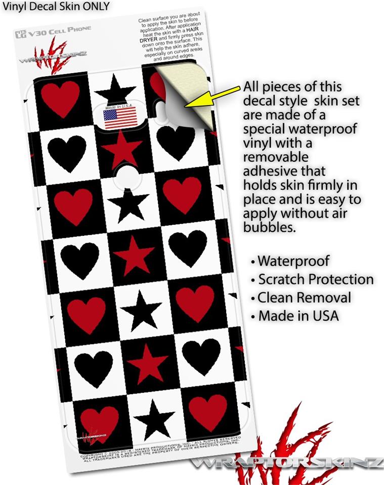 Skin Decal Wrap for LG V30 Hearts and Stars Red