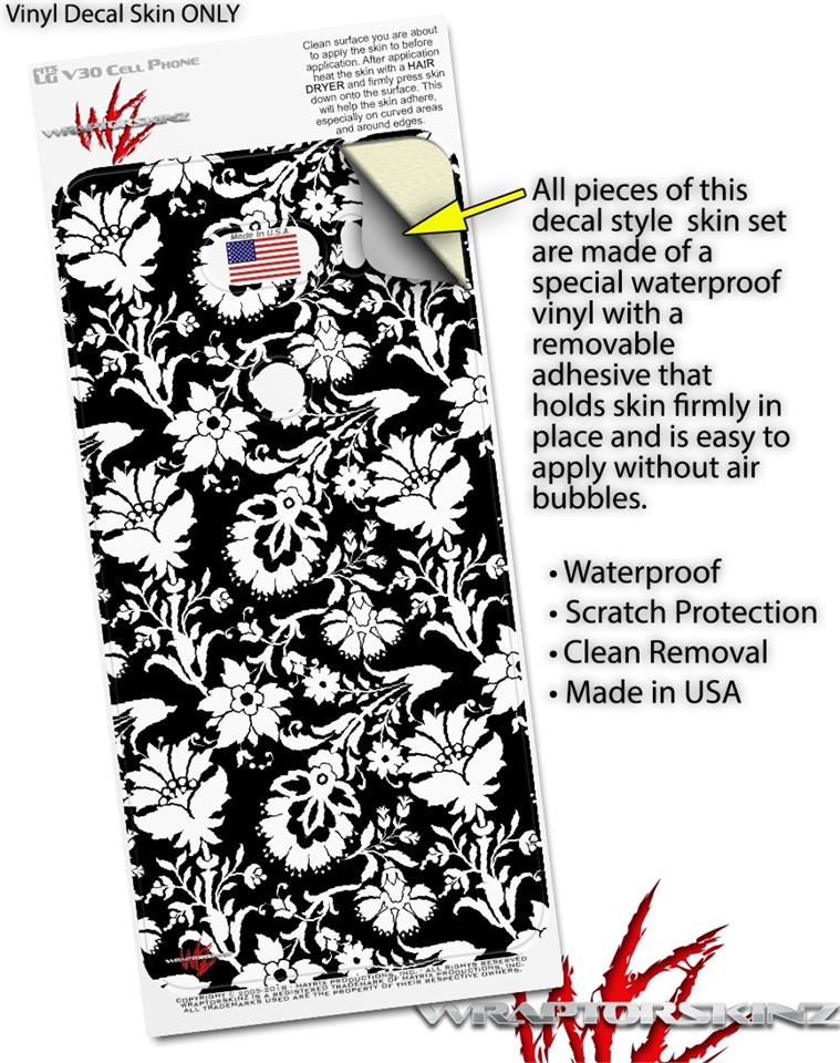 Skin Decal Wrap for LG V30 Black and White Flower