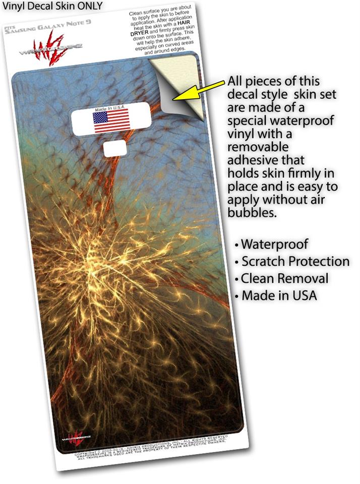 WraptorSkinz® skin wraps for the Samsung Galaxy Note 9 are printed using superb photo quality designs and vibrant colors printed with special fade resistant inks that last even in direct sun for years. WraptorSkinz are a composite of two layers of commercial grade materials. The bottom layer is a soft, flexible vinyl with a special removable adhesive that is easily positioned, applied without air bubbles. Next, we print the bottom layer with UV protected, fade resistant inks that deliver superb photo quality designs in vibrant colors. Finally, we bond a professional grade laminate over the entire Galaxy Note 9 skin adding a glossy protective finish. This product is not affiliated with or endorsed by Samsung.