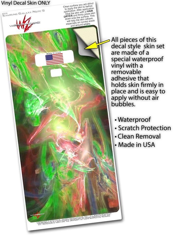 WraptorSkinz® skin wraps for the Samsung Galaxy Note 9 are printed using superb photo quality designs and vibrant colors printed with special fade resistant inks that last even in direct sun for years. WraptorSkinz are a composite of two layers of commercial grade materials. The bottom layer is a soft, flexible vinyl with a special removable adhesive that is easily positioned, applied without air bubbles. Next, we print the bottom layer with UV protected, fade resistant inks that deliver superb photo quality designs in vibrant colors. Finally, we bond a professional grade laminate over the entire Galaxy Note 9 skin adding a glossy protective finish. This product is not affiliated with or endorsed by Samsung.