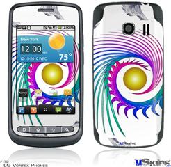 Skin covers front and back of LG Vortex cell phone.