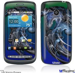 Skin covers front and back of LG Vortex cell phone.