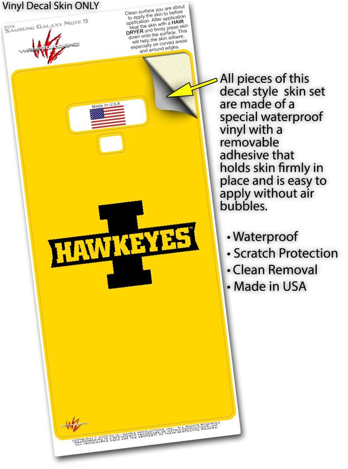 Decal style Skin Wrap compatible with Samsung Galaxy Note 9 Iowa Hawkeyes 02 Black on Gold