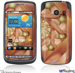 Skin covers front and back of LG Vortex cell phone.