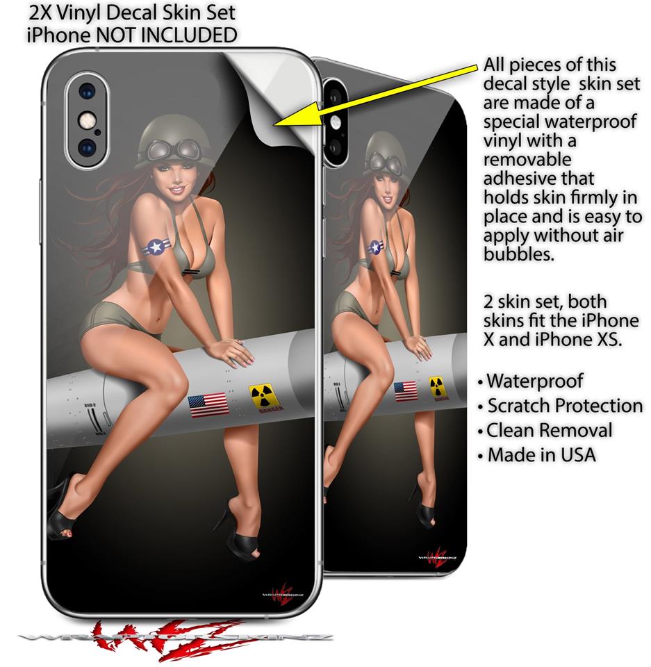 2 Decal style Skin Wraps set for Apple iPhone X and XS Missle Army Pinup Girl