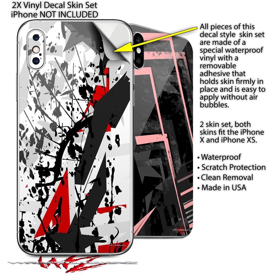2 Decal style Skin Wraps set for Apple iPhone X and XS Baja 0018 Red