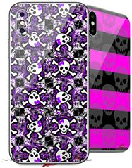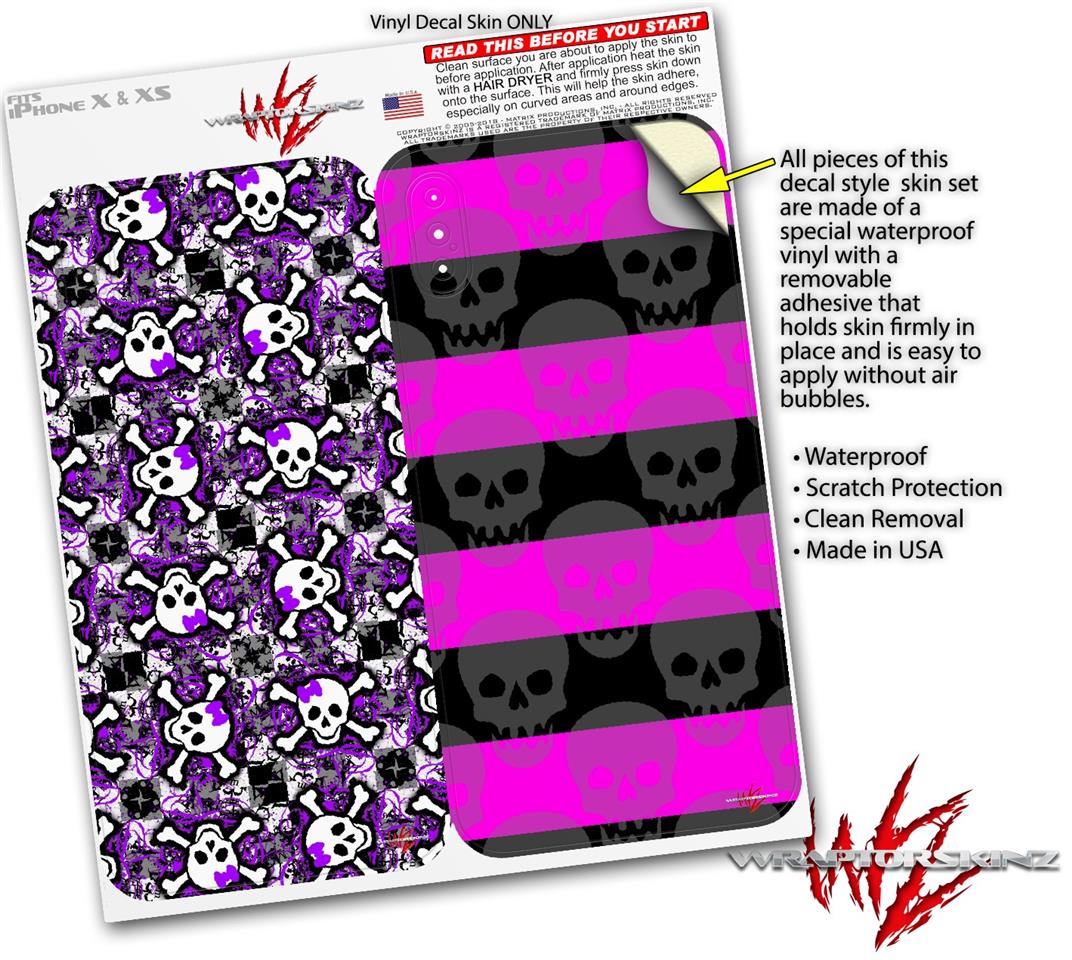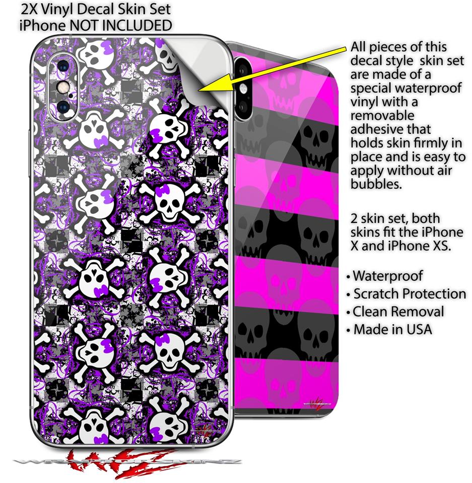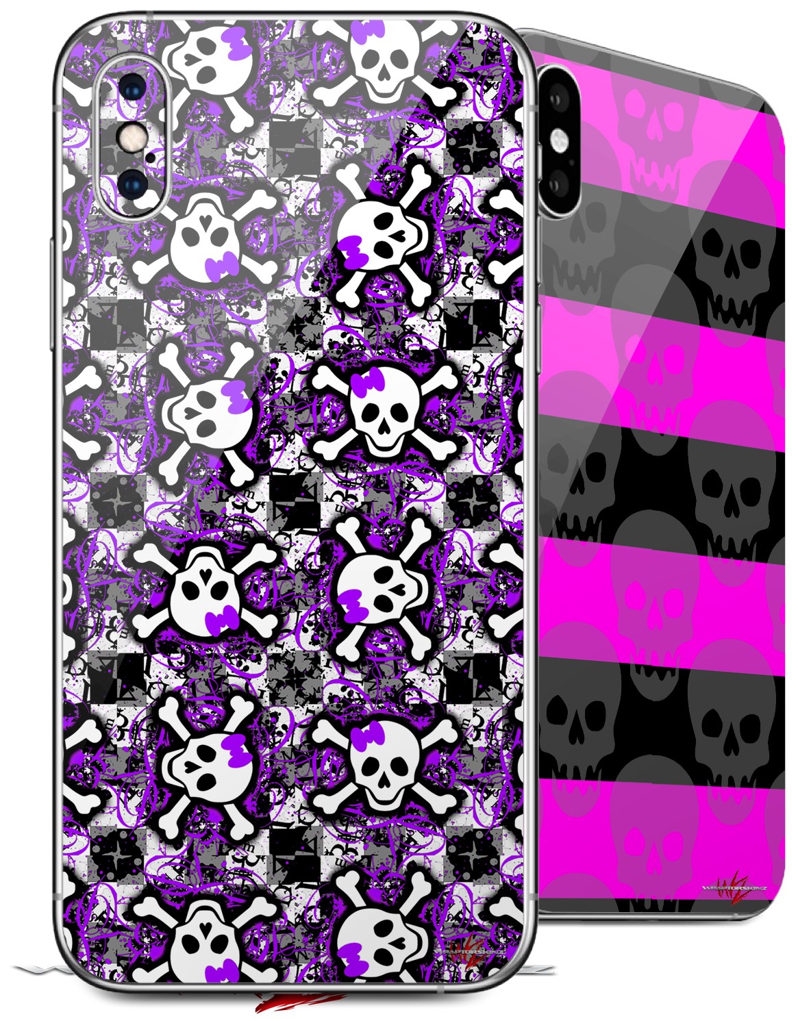 2 Decal style Skin Wraps set for Apple iPhone X and XS Splatter Girly Skull Purple