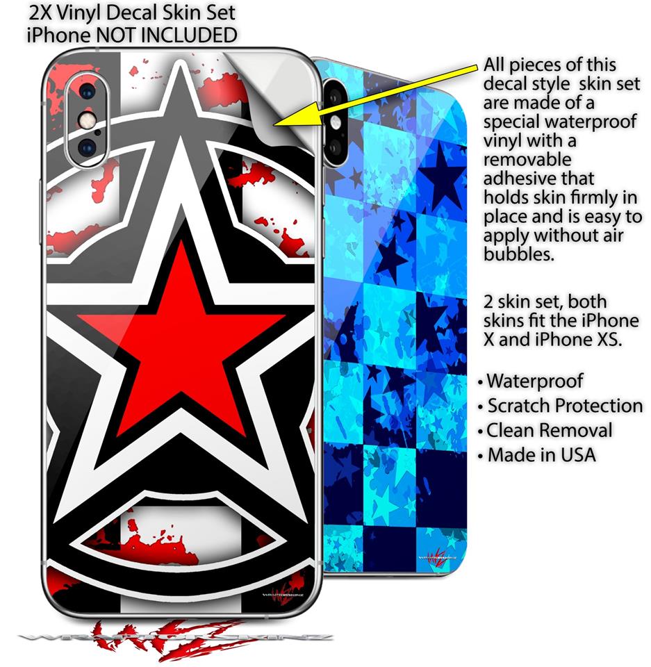 2 Decal style Skin Wraps set for Apple iPhone X and XS Star Checker Splatter