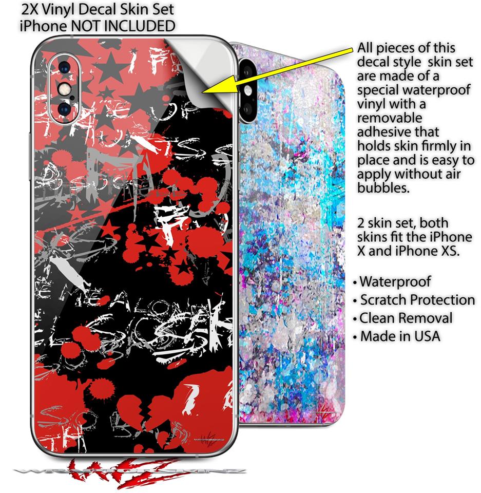 2 Decal style Skin Wraps set for Apple iPhone X and XS Emo Graffiti