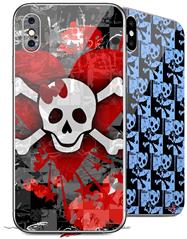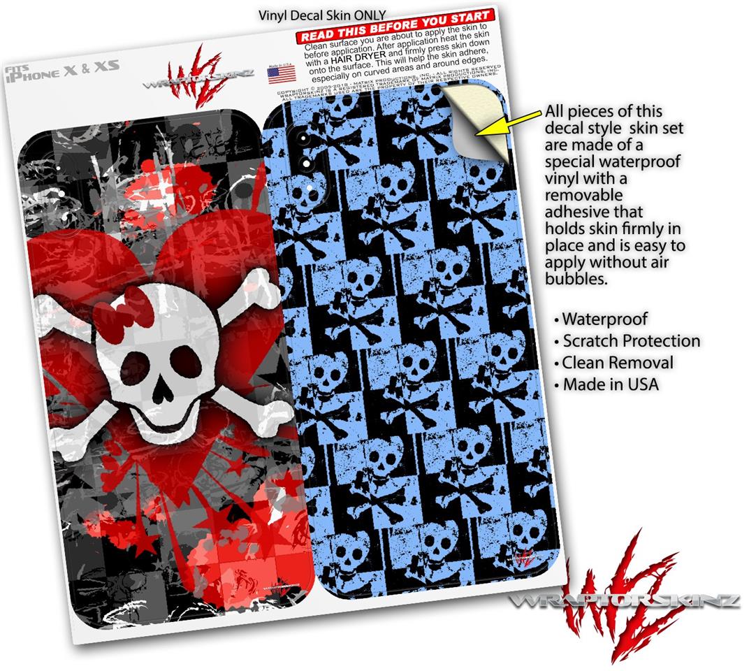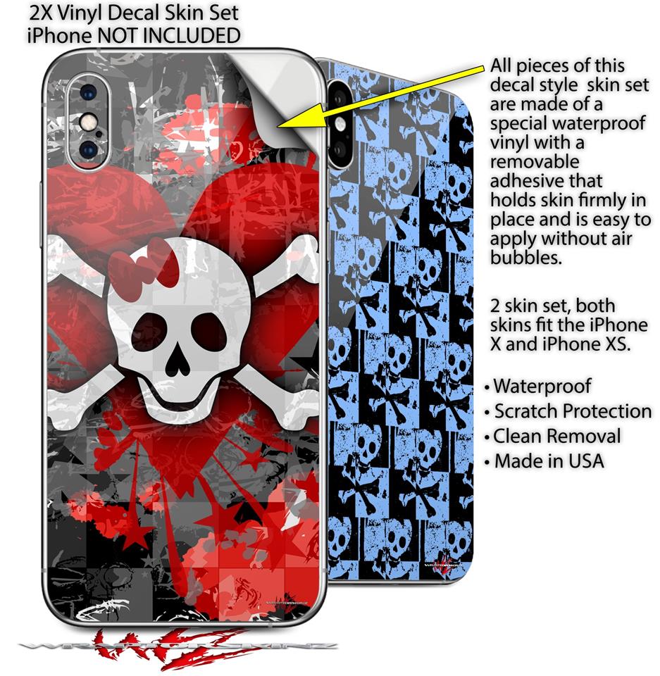2 Decal style Skin Wraps set for Apple iPhone X and XS Emo Skull Bones