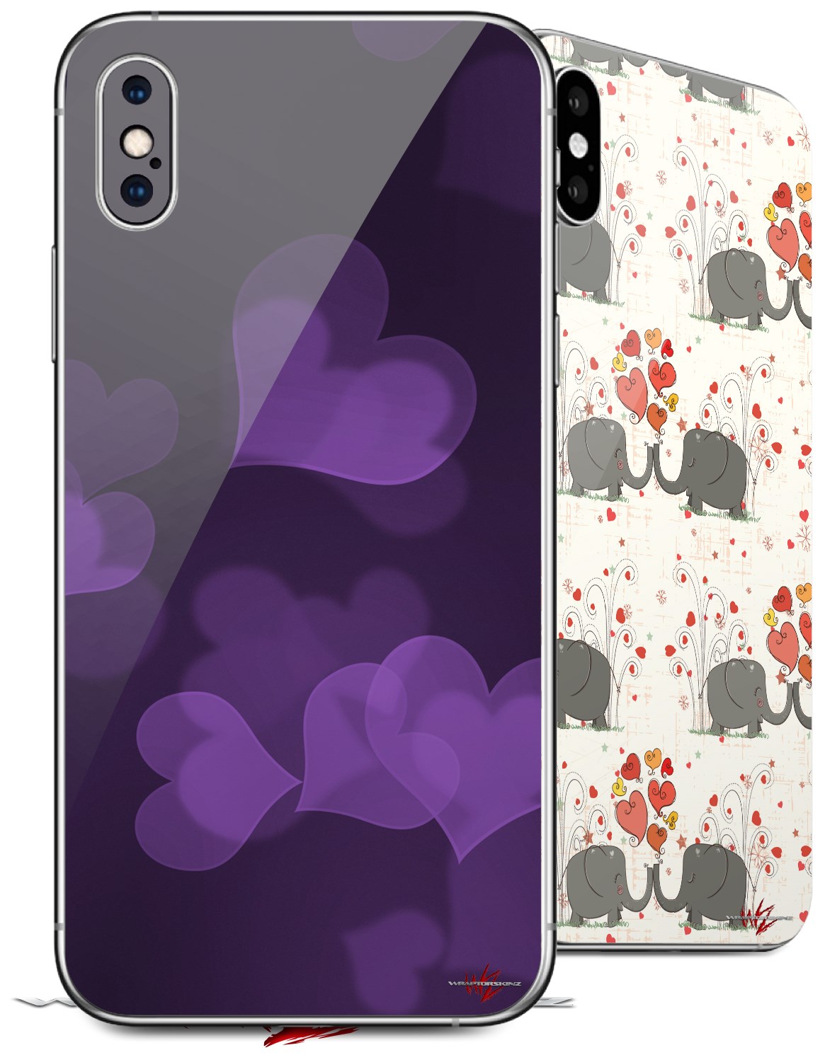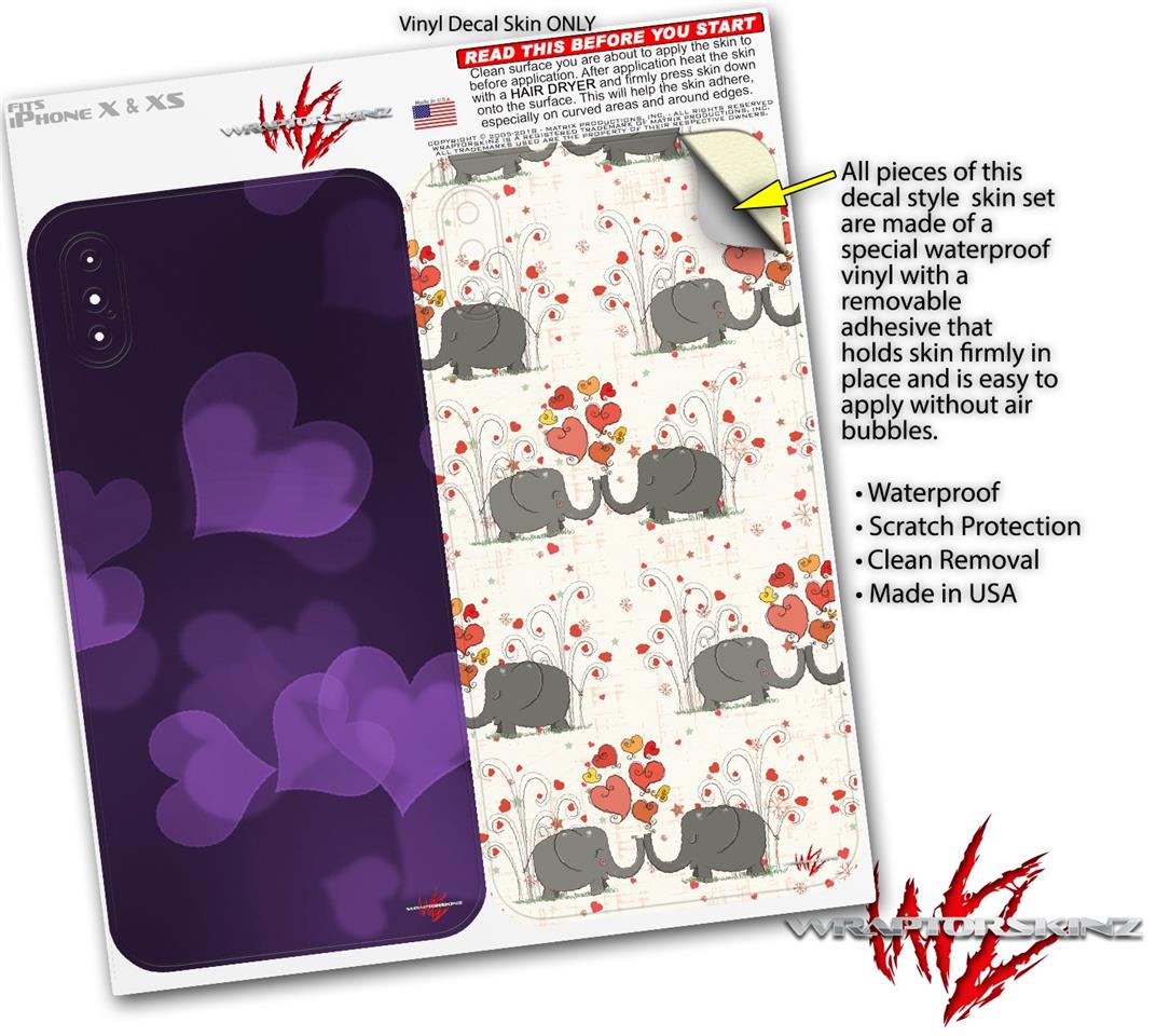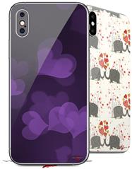2 Decal style Skin Wraps set for Apple iPhone X and XS Bokeh Hearts Purple