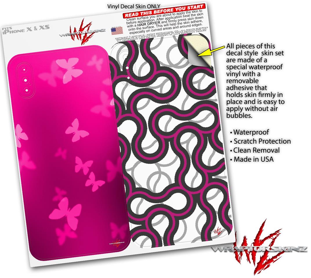 2 Decal style Skin Wraps set for Apple iPhone X and XS Bokeh Butterflies Hot Pink