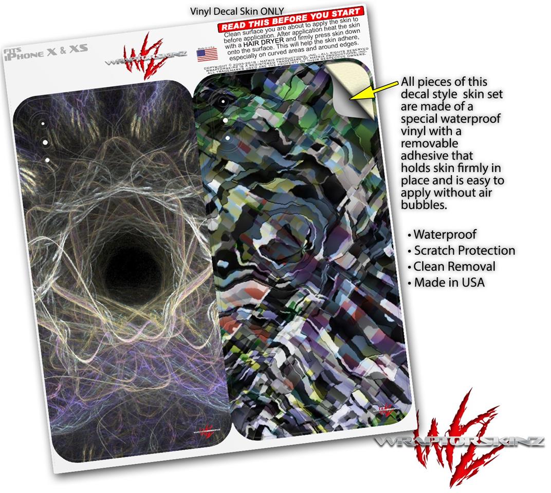 • 2 Decal style vinyl skins covers back side of the Apple iPhone X and iPhone XS - Not a hard case - Compatible with most Clear and TPU cases.