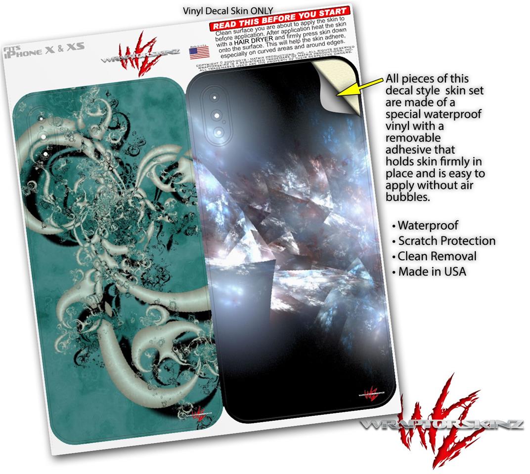 • 2 Decal style vinyl skins covers back side of the Apple iPhone X and iPhone XS - Not a hard case - Compatible with most Clear and TPU cases.