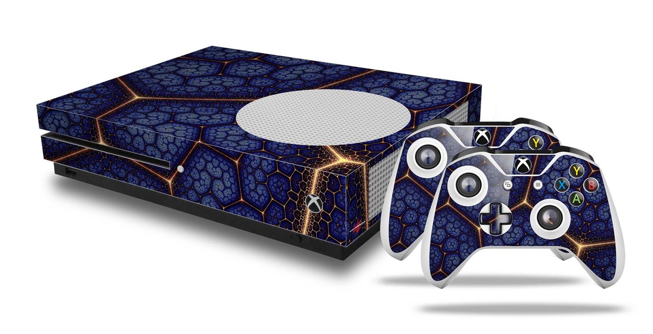 WraptorSkinz Decal Skin Wrap Set works with 2016 and newer XBOX One S Console and 2 Controllers Linear Cosmos Blue