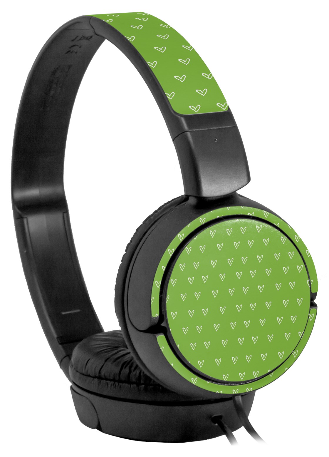 Decal style Skin Wrap for Sony MDR ZX110 Headphones Hearts Green On White (HEADPHONES NOT INCLUDED)