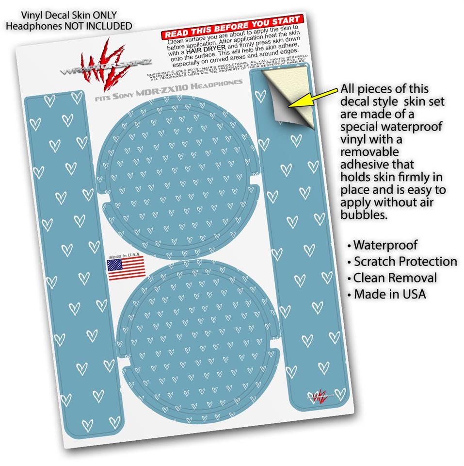 Decal style Skin Wrap for Sony MDR ZX110 Headphones Hearts Blue On White (HEADPHONES NOT INCLUDED)