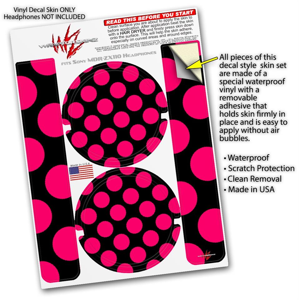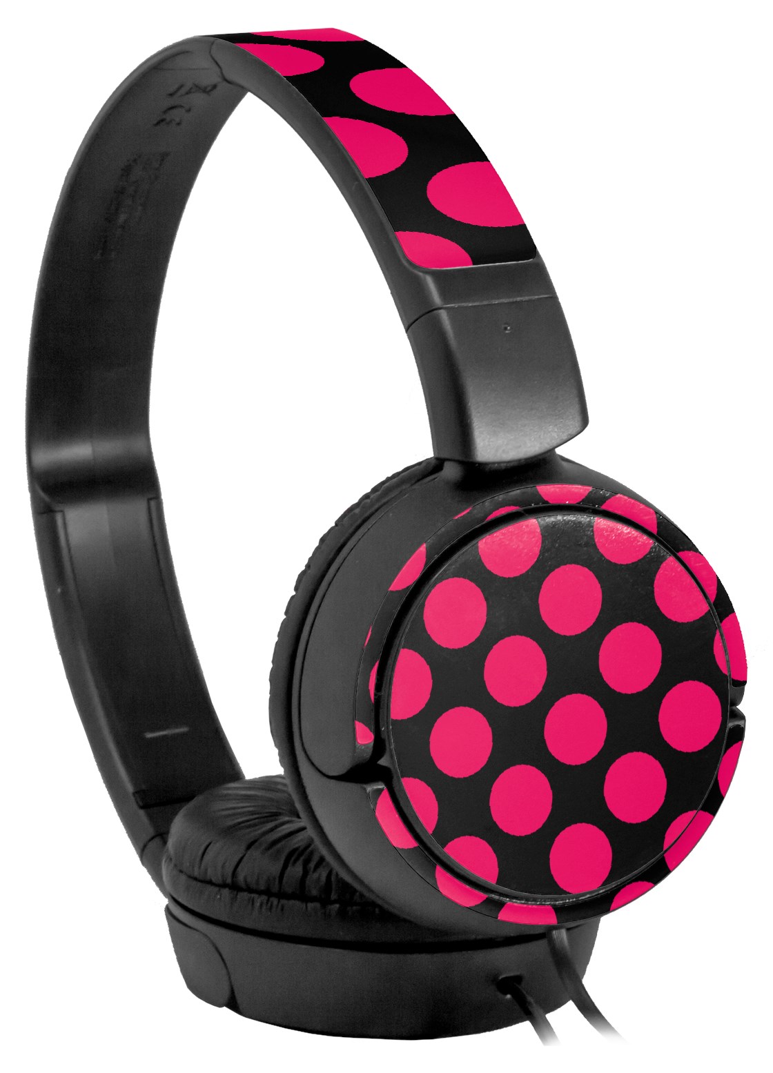 Decal style Skin Wrap for Sony MDR ZX110 Headphones Kearas Polka Dots Pink On Black (HEADPHONES NOT INCLUDED)