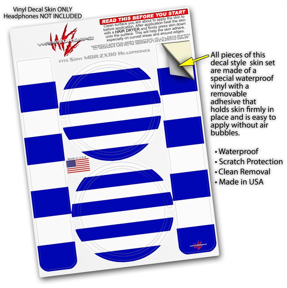 Decal style Skin Wrap for Sony MDR ZX110 Headphones Psycho Stripes Blue and White (HEADPHONES NOT INCLUDED)