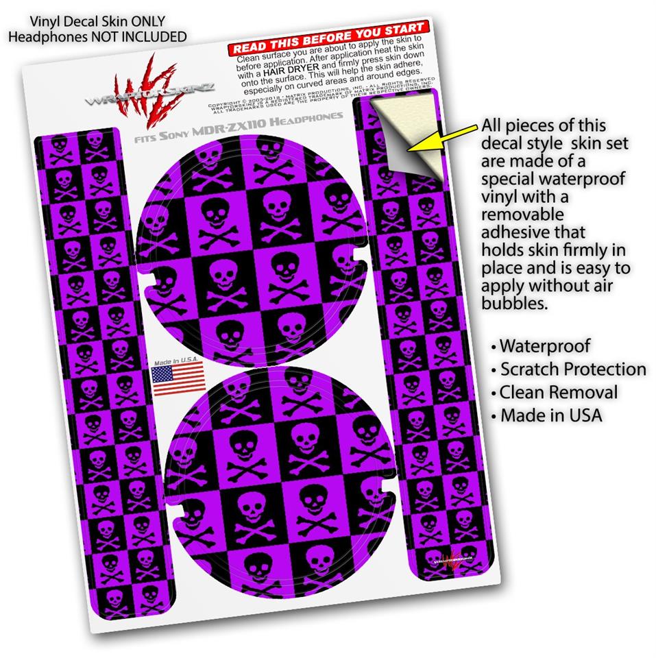 Decal style Skin Wrap for Sony MDR ZX110 Headphones Skull Checkers Purple (HEADPHONES NOT INCLUDED)