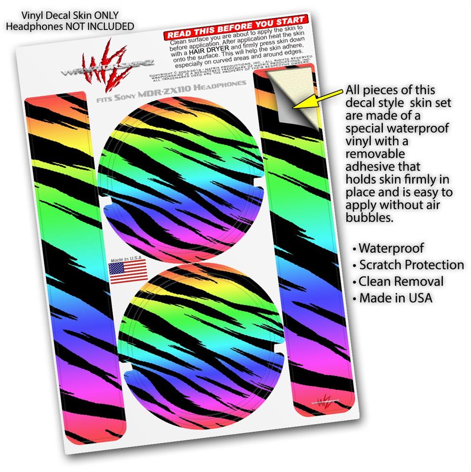 Decal style Skin Wrap for Sony MDR ZX110 Headphones Tiger Rainbow (HEADPHONES NOT INCLUDED)