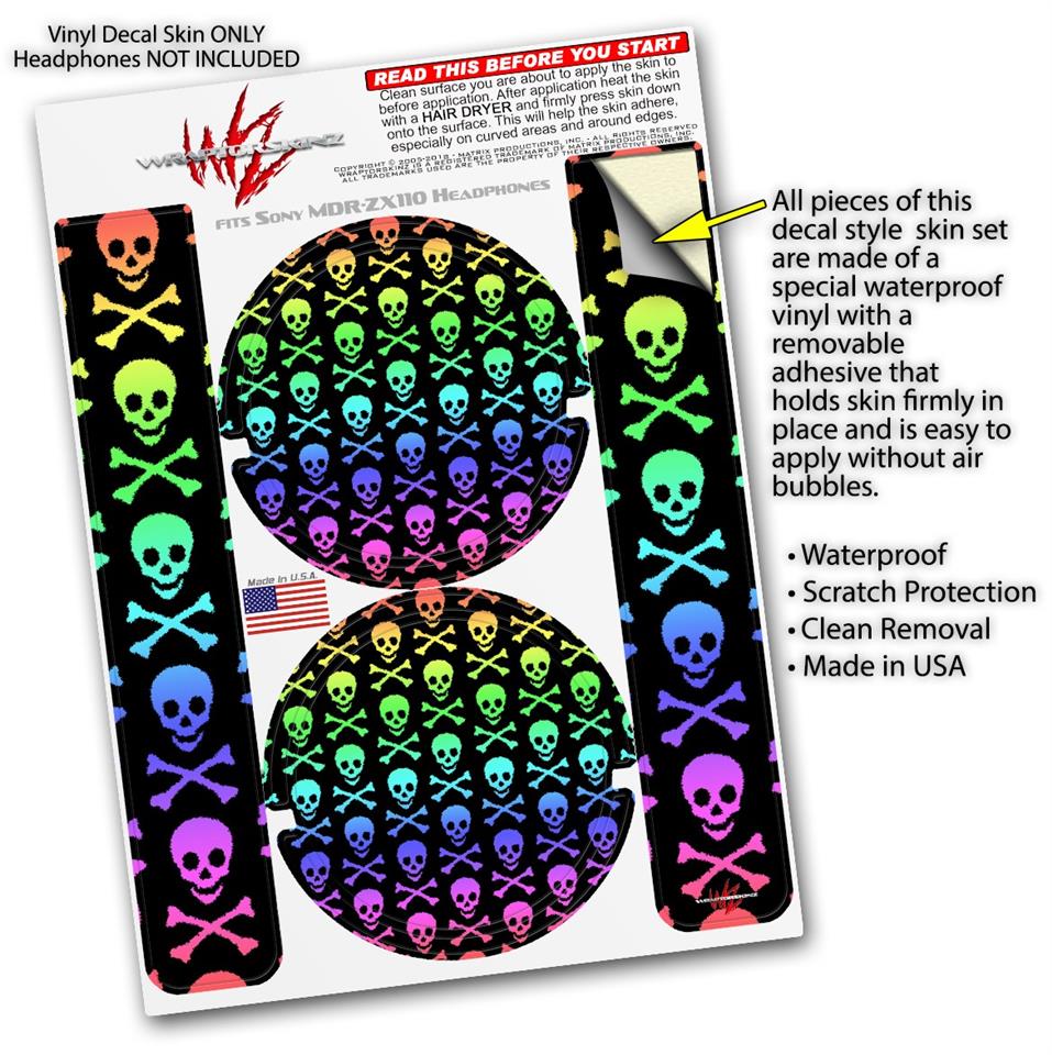 Decal style Skin Wrap for Sony MDR ZX110 Headphones Skull and Crossbones Rainbow (HEADPHONES NOT INCLUDED)