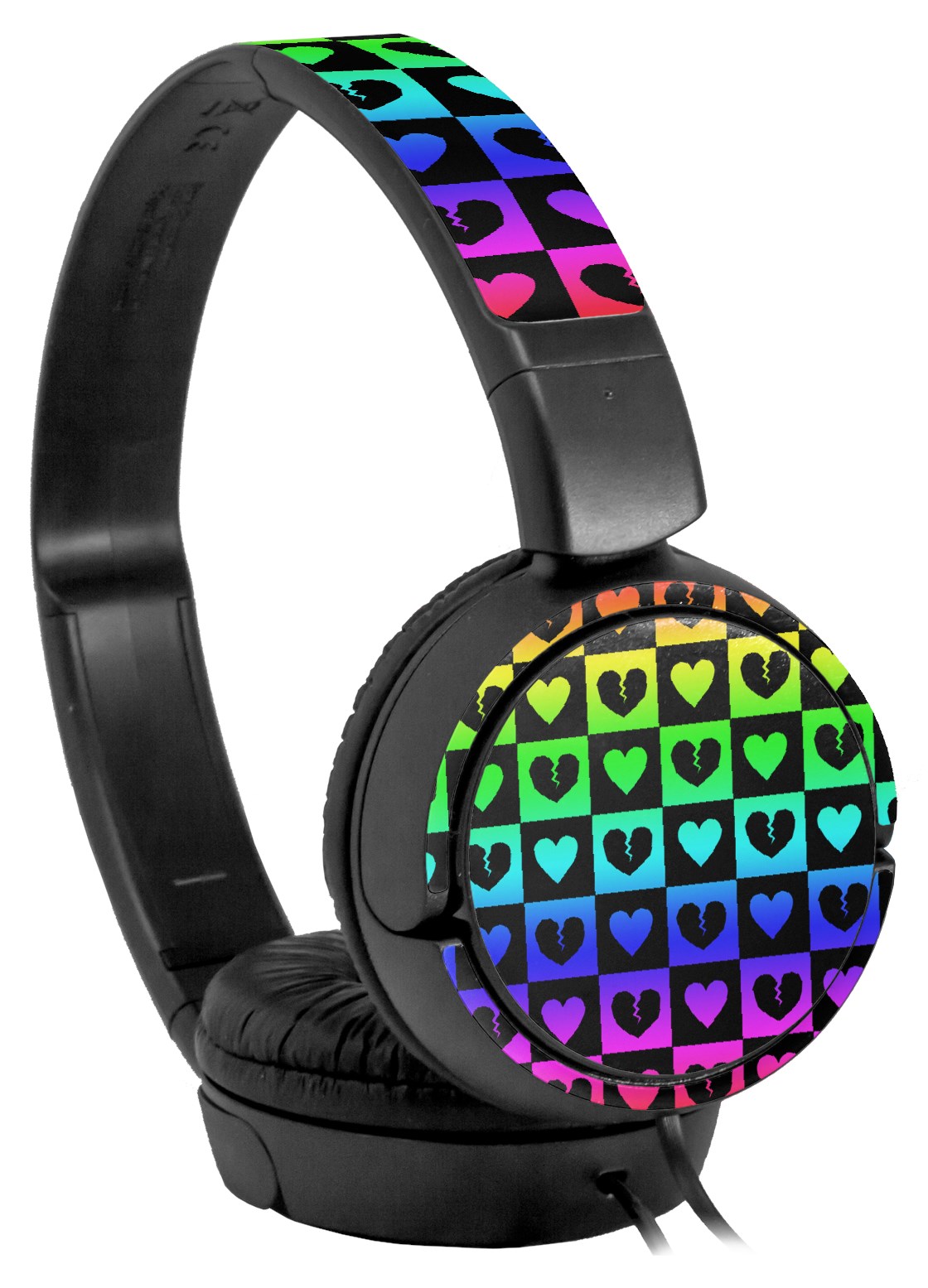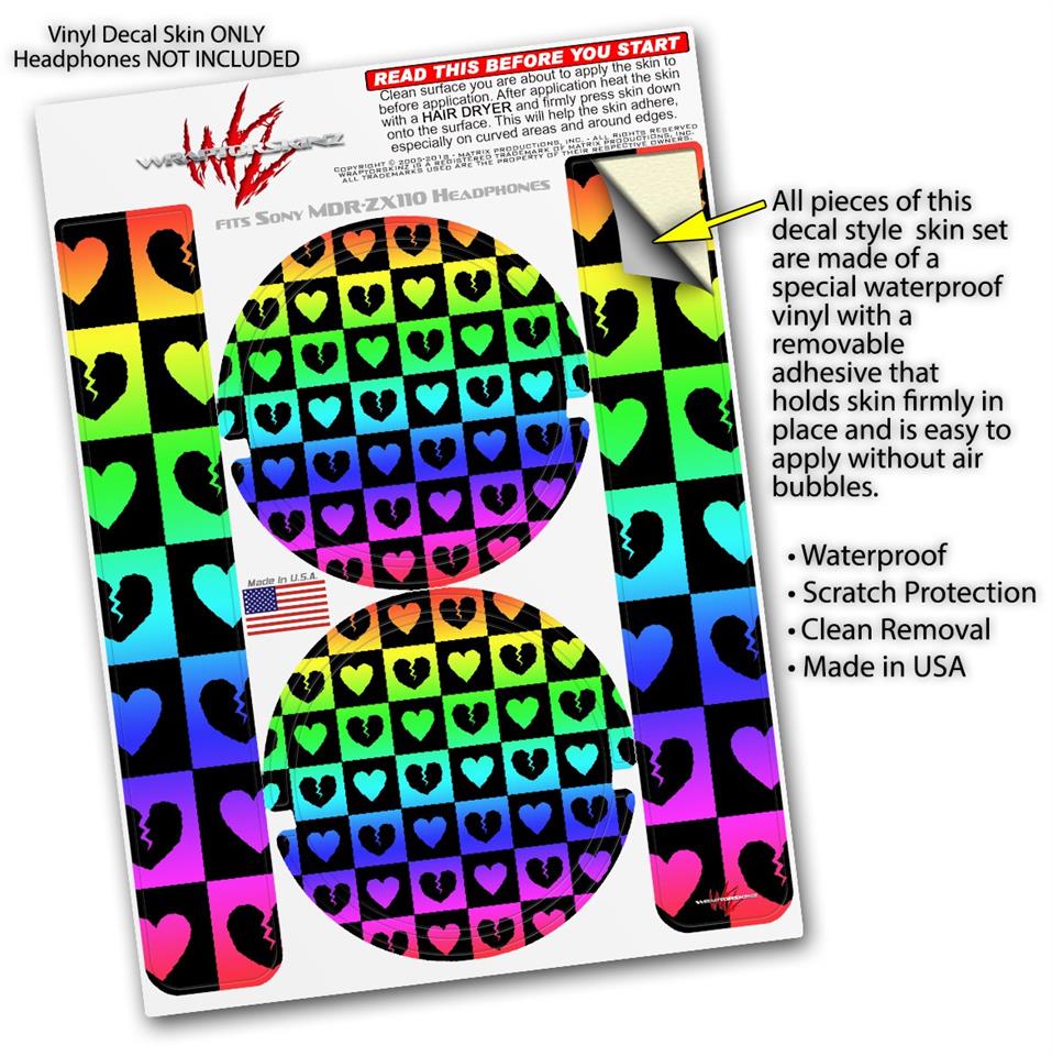 Decal style Skin Wrap for Sony MDR ZX110 Headphones Love Heart Checkers Rainbow (HEADPHONES NOT INCLUDED)