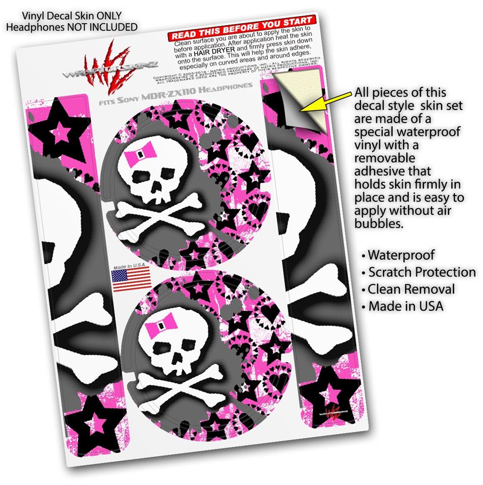 Decal style Skin Wrap for Sony MDR ZX110 Headphones Pink Bow Skull (HEADPHONES NOT INCLUDED)