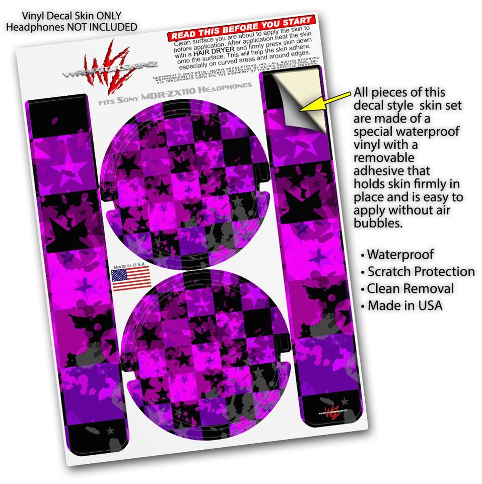 Decal style Skin Wrap for Sony MDR ZX110 Headphones Purple Star Checkerboard (HEADPHONES NOT INCLUDED)