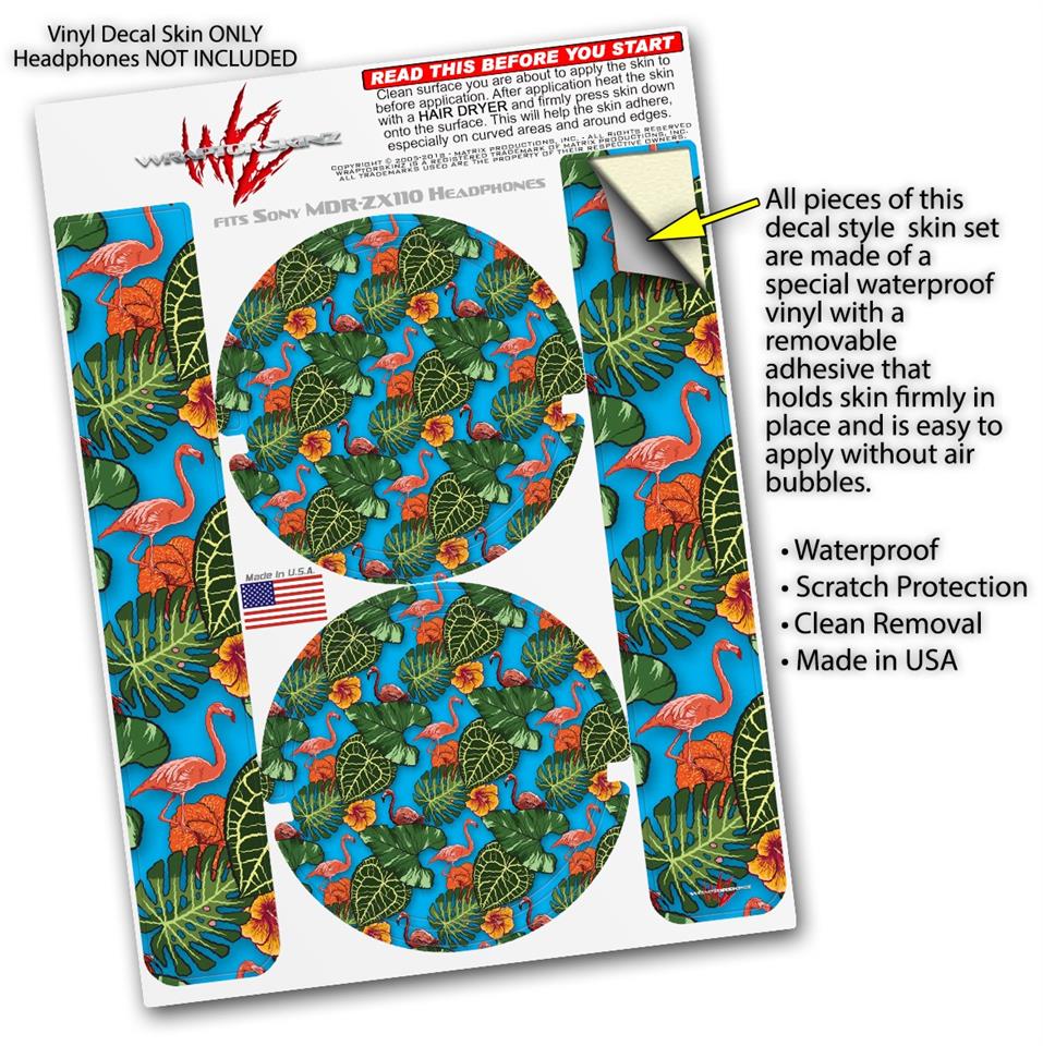 Decal style Skin Wrap for Sony MDR ZX110 Headphones Famingos and Flowers Blue Medium (HEADPHONES NOT INCLUDED)