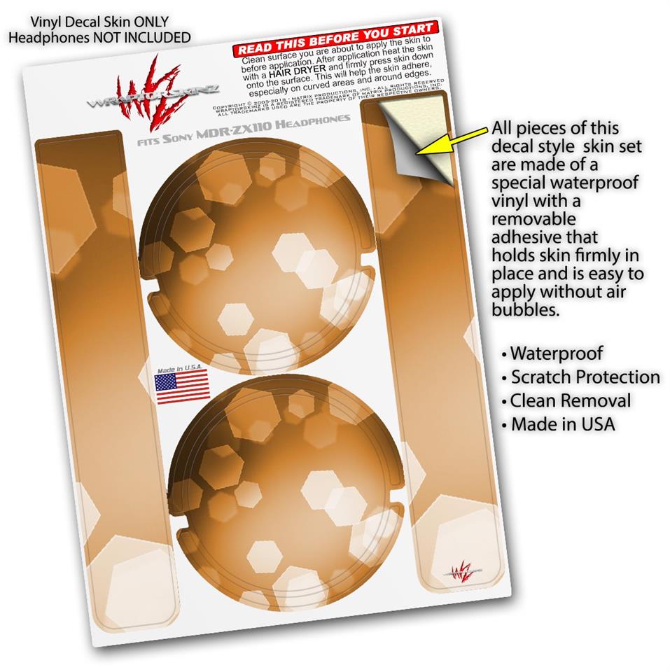 Decal style Skin Wrap for Sony MDR ZX110 Headphones Bokeh Hex Orange (HEADPHONES NOT INCLUDED)
