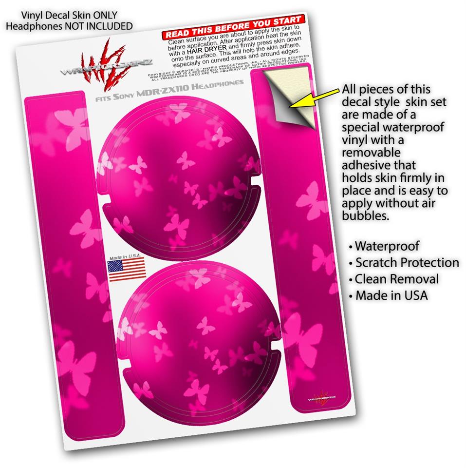 Decal style Skin Wrap for Sony MDR ZX110 Headphones Bokeh Butterflies Hot Pink (HEADPHONES NOT INCLUDED)