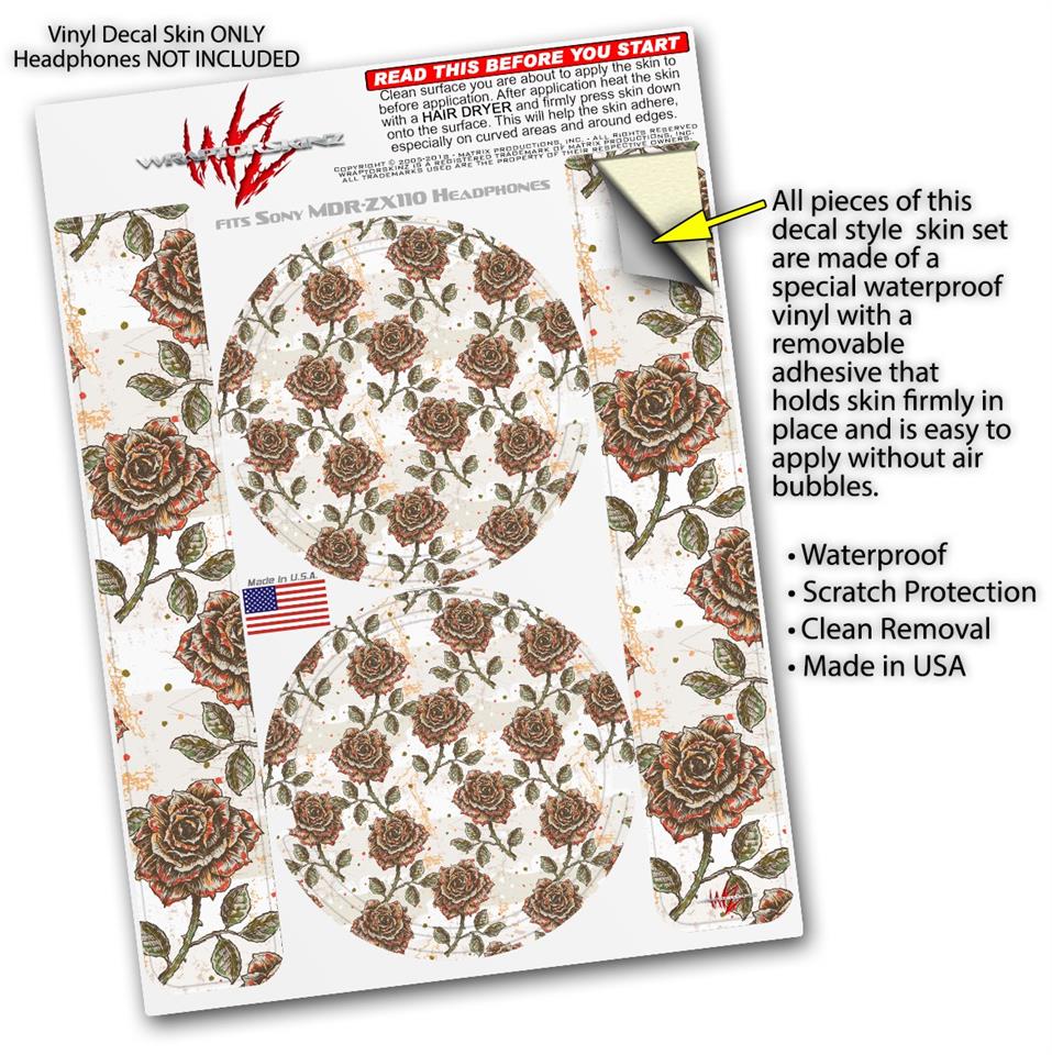 Decal style Skin Wrap for Sony MDR ZX110 Headphones Flowers Pattern Roses 20 (HEADPHONES NOT INCLUDED)