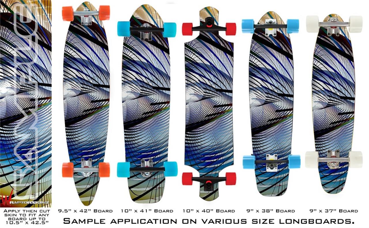 Our longboard skins are made so that one size fits boards up to 10” wide x 42” long. This means after applying the skin it you will trimming to fit you’re the shape of your board with a sharp utility knife.