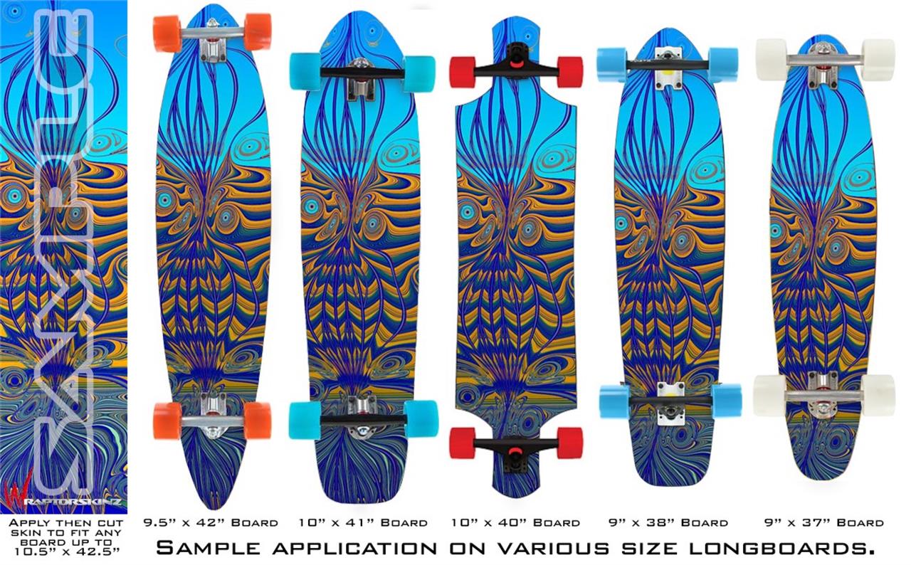 Our longboard skins are made so that one size fits boards up to 10” wide x 42” long. This means after applying the skin it you will trimming to fit you’re the shape of your board with a sharp utility knife.