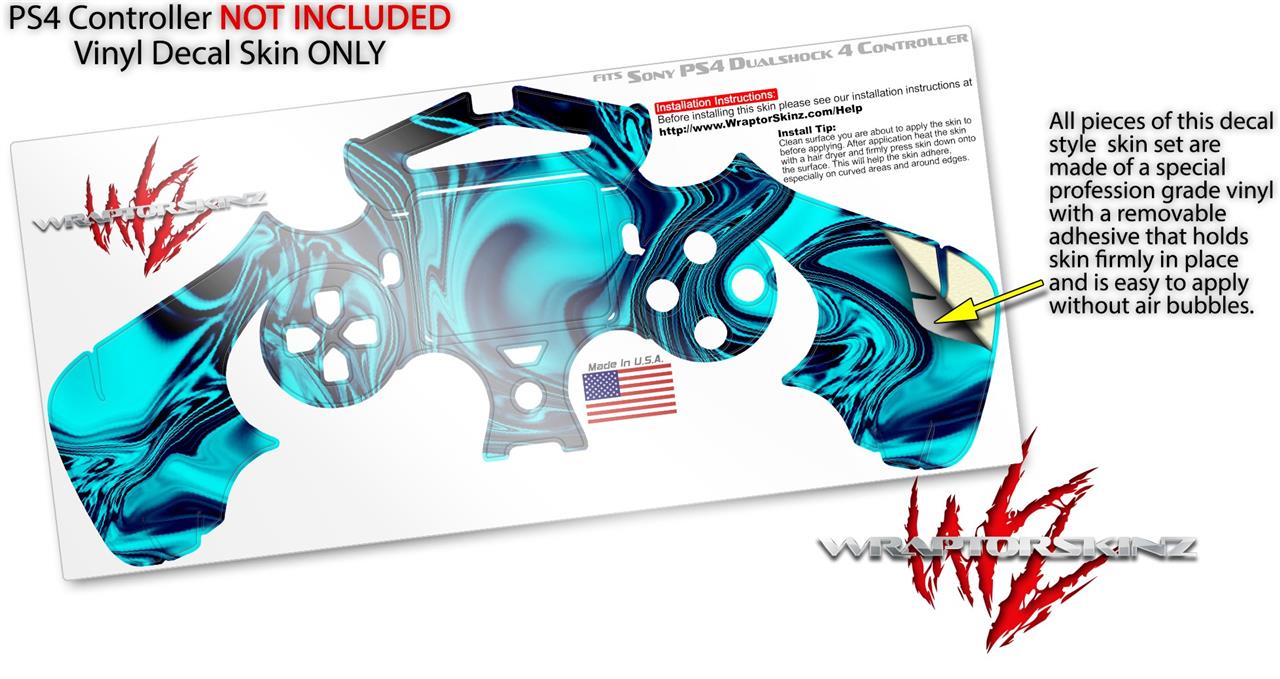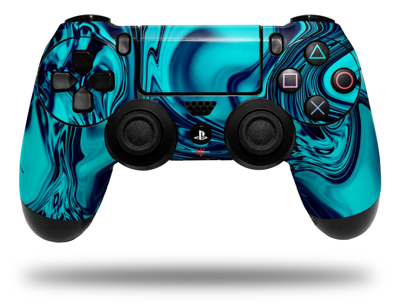 WraptorSkinz Skin compatible with Sony PS4 Dualshock Controller PlayStation 4 Original Slim and Pro Liquid Metal Chrome Neon Blue (CONTROLLER NOT INCLUDED)