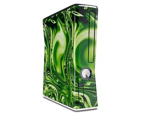 Decal Style Skin compatible with XBOX 360 Slim Vertical Liquid Metal Chrome Neon Green