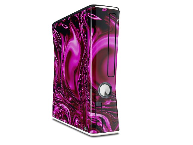 Decal Style Skin compatible with XBOX 360 Slim Vertical Liquid Metal Chrome Hot Pink Fuchsia